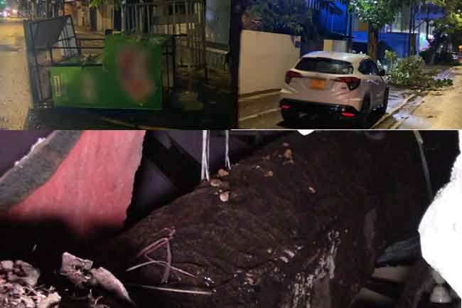 කොළඹ – ගාලු පාරේ කොල්ලුපිටියේ සිට වැල්ලවත්ත දක්වා මෙන්ම ග්රෑන්ඩ්පාස් අවට ප්රදේශ කිහිපයකම ගස් කඩාවැටී තිබෙන අයුරු දැකගත හැකිවිය.
